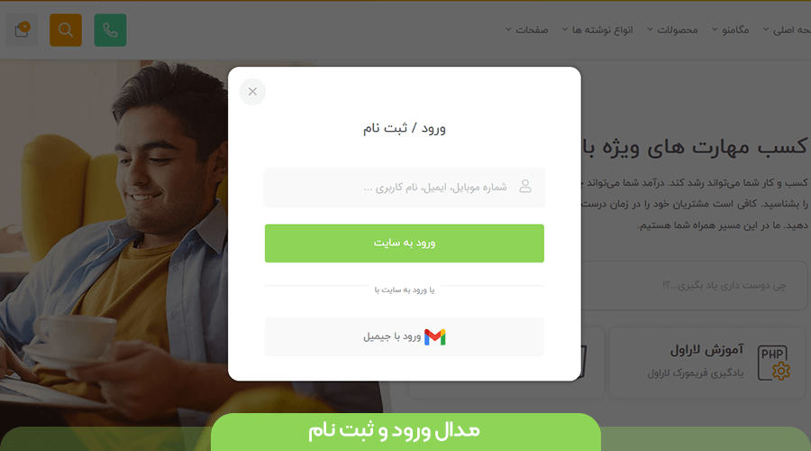 نمایش مدال و فرم ورود و ثبت نام در هر کجای سایت شما