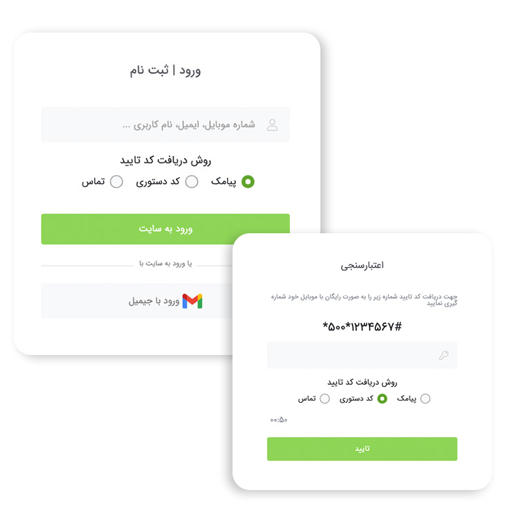 ورود و ثبت نام سریع کاربر با دریافت رایگان کد از طریق کد دستوری USSD